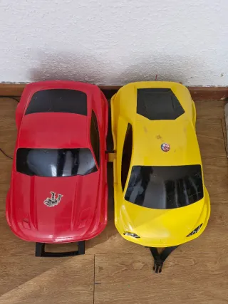 Set de dos maletas infantiles con diseño de coche deportivo. Perfectas para que los niños lleven sus juguetes o equipaje. - Maleta roja con detalle de figura. - Maleta amarilla con diseño aerodinámico.