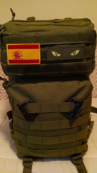Mochila de estilo militar con capacidad de 20 litros. - Diseño táctico con múltiples compartimentos. - Cintas MOLLE para acoplar equipo adicional. - Correas de hombro ajustables y acolchadas. - Asa de transporte superior. Solo la he usado en do ocasiones, esta como nueva.