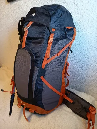 Mochila de senderismo Quechua con gran capacidad. - Color azul y gris. - Capacidad de 50+10 litros.