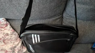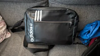Mochila de estilo bandolera con el logo de Adidas. Para portátil o apuntes. - Diseño moderno con tres rayas blancas. - Compartimento principal con cremallera. - Correa ajustable para el hombro.