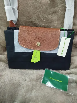 Bolso de mano con solapa y detalles en piel. - Color negro con solapa marrón. .Nuevo a estrenar