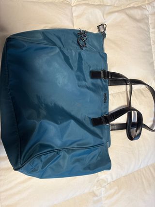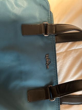 Bolso de Kipling en un bonito color azul verdoso. - Material de nylon resistente. - Asas de cuero negro. - Cremallera superior. - Detalle de llavero colgante.
