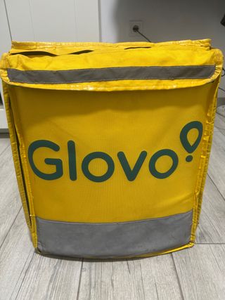 Mochila de reparto Glovo en color amarillo. - Diseño práctico para entregas. - Detalles reflectantes para mayor visibilidad.