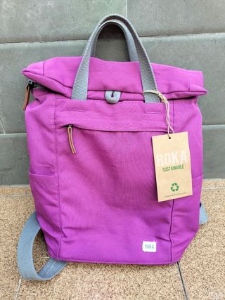 Preciosa mochila Roka Finchley de tamaño mediano, en color morado. Es perfecta para el día a día. - Diseño elegante y moderno. - Asa superior para llevarla con comodidad en la mano. - Compartimento principal con cierre de cremallera. - Parta de abajo resistente con una capa especial -Mas de 6 bolsillos interiores para buen organización: para bolis, tarjetas, paraguas, portátil etc. 4 bolsillos exteriores: dos laterales, uno frontal grade y uno "secreto" que es perfecto para la cartera o pasaporte, en la espalda. Super cómoda de llevar y se extiende desde arriba para tener más espacio: 42cm x 28cm x 13cm. Capacidad: 15 litros. Res