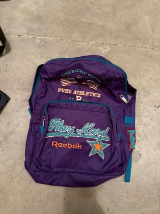 Mochila Reebok vintage en tonos morados y verdes. Es una mochila espaciosa y cómoda, ideal para uso diario. - Diseño deportivo con detalles bordados. - Cremalleras funcionales. - Correas ajustables para mayor comodidad. alto 44 anvho 35 fondo 14