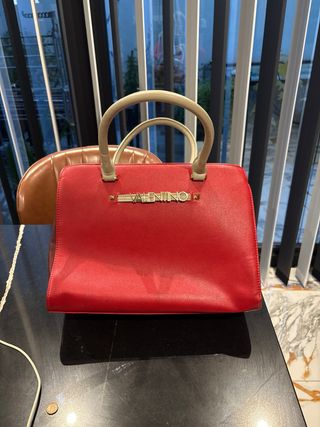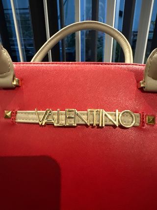 Bolso grande de la marca Valentino. - Color rojo vibrante. - Detalles en dorado. - Asa cómoda para llevar. - Logo metálico de la marca.