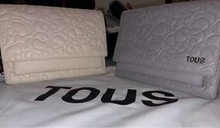 cada bolso tiene un precio de 65 euros - Bolso beige con asas cortas. - Bolso de hombro con monograma Tous. - Bolso cuadrado gris claro. - Incluye bolsa de tela