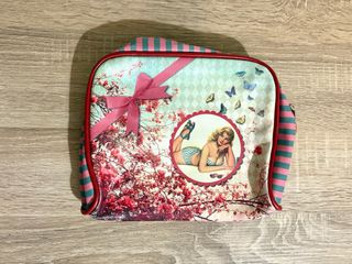 Neceser vintage con ilustración. Buena capacidad. Manchas sutiles (ver bien la imágenes del producto).