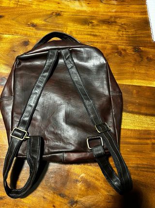 Mochila de cuero marrón y negro