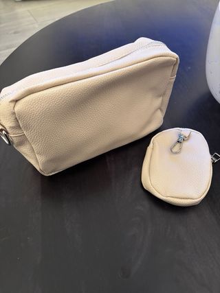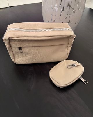 Bolso neceser beige con monedero a juego