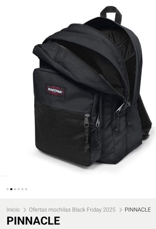 Mochila Eastpak modelo Pinnacle en color azul. Un diseño clásico y funcional. - Compartimento principal espacioso. - Bolsillo frontal con cremallera. - Tirantes acolchados y ajustables. - Asa superior. - Etiqueta de la marca en la parte frontal.