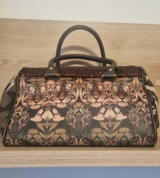 Bolso de mano con un llamativo estampado de tigres y detalles. - Diseño con estampado de tigres y motivos. - Detalles de lentejuelas en la parte superior. - Asas de mano. - Paneles laterales con estampado de camuflaje.