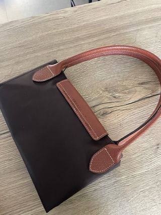 🚨 Envío SOLO por InPost, no tengo otra paquetería cerca. tener en cuenta Bolso plegable de nylon en color marrón con asas efecto piel. Usado un par de veces Tiene un pequeño descosido en una asa(ver foto) De regalo organizador para que bolso tenga base y forma al usarlo, organizador de fieltro tamaño M