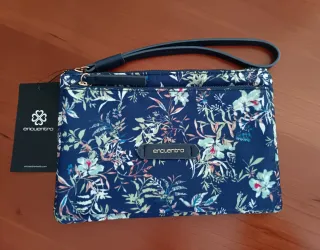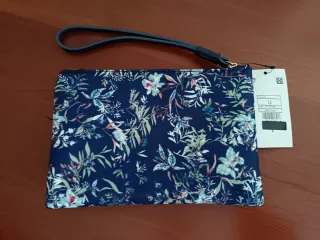 Bolso de mano con un bonito estampado floral. Puede usarse como neceser o cartera. Doble bolsillo. Cierre de cremallera. Solo tiene asa para llevar en la muñeca. Nunca se ha usado, conserva la etiqueta. Hago envíos por Wallapop (Wallapay) o entrega en mano en la zona de Mijas Costa
