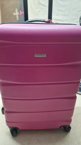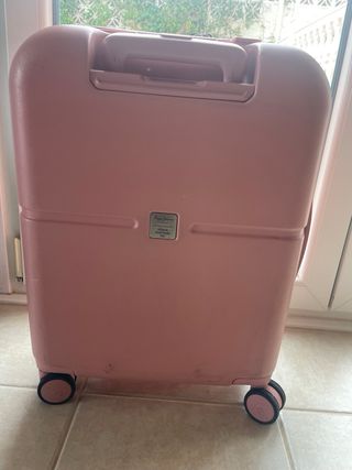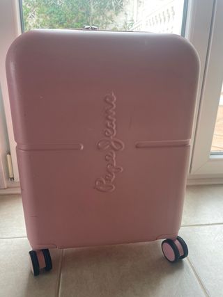 Maleta de cabina Pepe Jeans en color rosa. Perfecta para tus viajes. - Diseño moderno y funcional. - Ruedas para facilitar el transporte. - Asa extensible lateral (la de arriba la tiene rota).