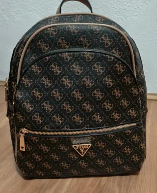 Mochila de la marca Guess con un diseño del logotipo, marca de la casa.💫 Incluye su funda guardapolvo original.👜 Pequeño defecto en un tramo de las asas y en asa de la cremallera (fotos), aunque apenas se ve. Interior y exterior perfectos, lista para lucir en tus fiestas y quedadas!👜✨️