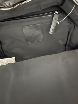 Mochila acolchada con un diseño moderno y llamativo. - Color negro brillante. - Acolchado con relieve. - Cierre de cremallera.