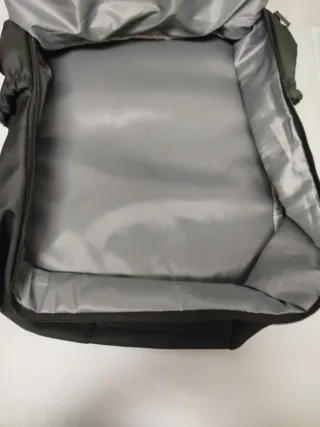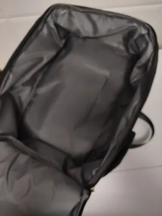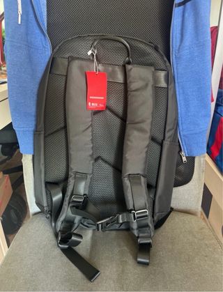 Funda o mochila para portátil con un diseño moderno y funcional. Cuenta con varios compartimentos para una mejor organización y correas para poder llevarlo a la espalda. Está sin estrenar.