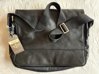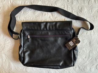 Bolso tipo mensajero de la marca Dockers, ideal para llevar ordenador, documentos y uso diario. Presenta ligero desgaste en los extremos de la cremallera, visible en las fotos, debido al paso del tiempo al estar guardada. No afecta al uso ni al cierre. Incluye etiqueta original. - Material piel sintética. - Correa ajustable. - Compartimento principal amplio. - Bolsillo frontal con cierre. - Interior forrado con bolsillo con cremallera. - Detalle de costuras. - Tamaño 40x35x10 (cm).