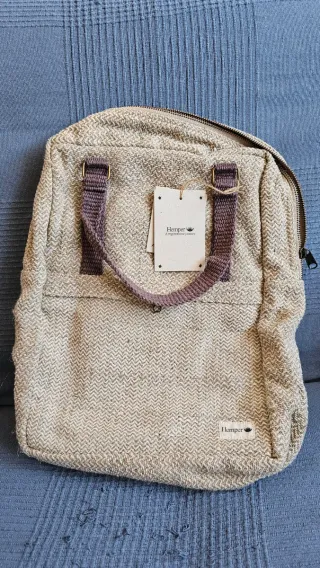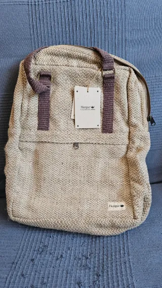 Mochila modelo Gokyo de la marca Hemper. Mochila de de cáñamo y algodón hecha con telar de mano. La mochila cuenta con un bolsillo interior para portátiles de hasta 13 pulgadas. Y un bolsillo exterior en la parte frontal con cremallera. Las asas de la mochila son de algodón hechas a mano. Confeccionada a mano en Nepal. Medidas en cm: 27 x 36 x 14 - Tejido con patrón de espiga. - Correas de hombro ajustables. - Bolsillo frontal con cremallera. - Etiqueta de la marca en la parte inferior.