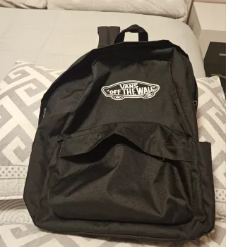 Mochila de la marca Vans en color negro. Cuenta con el logo distintivo de la marca en la parte frontal. - Compartimento principal espacioso. - Bolsillo frontal con cremallera. - Tirantes ajustables.