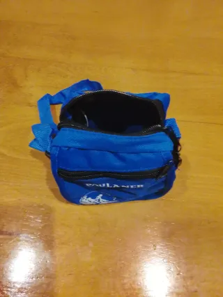 Práctica mochila pequeña con la marca Paulaner.Con 3 compartimentos de cremallera para móvil..monedero neceser. Puedes usarlo anudado al cinturón o bandolera regulable. - Color azul. - Diseño con el perfil de un hombre. - Correa ajustable. No pierdas tus cosas...hagootrs con productos del perfil