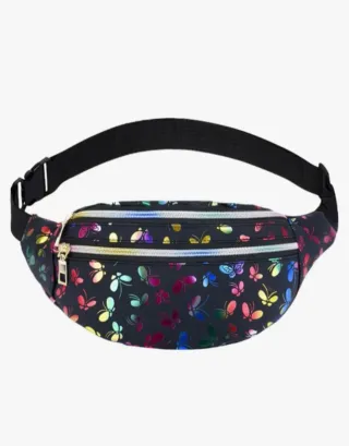 Riñonera con un divertido estampado de mariposas en varios colores. - Diseño llamativo y juvenil. - Cremalleras metálicas. - Correa ajustable.