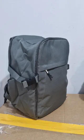 Mochila de viaje con un diseño moderno y funcional. - Compartimento principal espacioso. - Bolsillo frontal con cremallera. - Correas de hombro ajustables y acolchadas. - Asa superior reforzada. - Hebilla de ajuste lateral.
