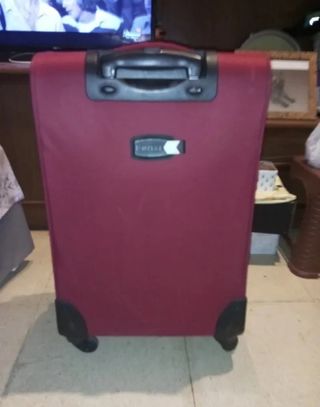 Maleta de viaje mide 66 de alto 40 de ancho 26 de extrecho solo tiene esos pequeños roces pero no influye para su uso precio no negociable no ago envios - Dos compartimentos principales con cremallera. - Asa extensible y ruedas para facilitar el transporte. - Logo de la marca visible.