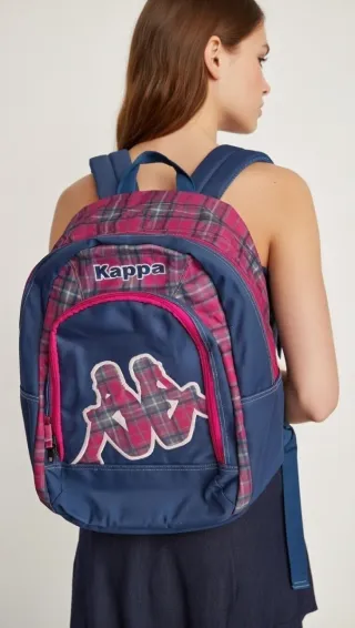 Mochila con un diseño a cuadros en tonos rosa y azul, perfecta para el día a día. - Logo de Kappa en la parte frontal. - Bolsillo exterior con cremallera. - Cierre principal con cremallera.