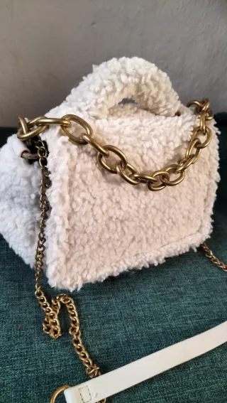 Bolso peluche blanco cadena dorada yalhobro