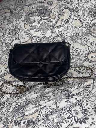 Bolso negro acolchado con cadena