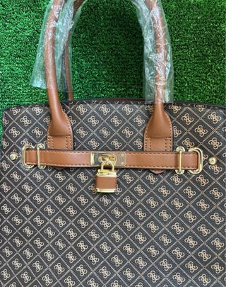 Bolso de mano marrón con detalles dorados