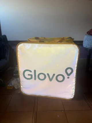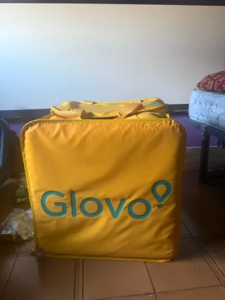 Mochila de reparto Glovo en llamativos colores amarillo y turquesa. Perfecta para mantener tus pedidos seguros y a la temperatura adecuada. - Diseño espacioso. - Asas resistentes para un transporte cómodo.
