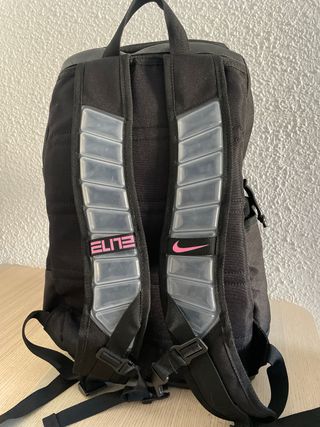Mochila deportiva Nike Elite con detalles en rosa. - Diseño moderno y funcional. - Compartimento principal espacioso. - Bolsillos laterales. - Correas ajustables.