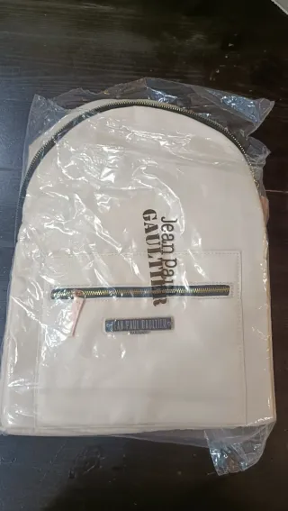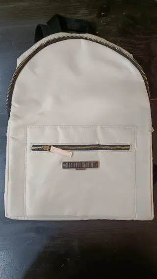Mochila de la reconocida marca Jean Paul Gaultier. - Color rosa pastel - Compartimento frontal con cremallera. - Placa metálica con el logo de la marca.