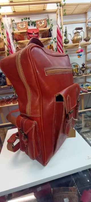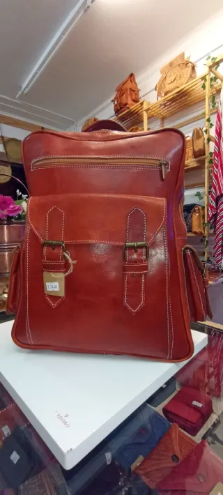 Mochila de cuero hecha a mano con un diseño clásico y funcional. - Material: Cuero genuino. - Acabado: Marrón natural. - Bolsillos exteriores con cierre de hebilla. - un bolsillo de espalda con cremallera. - Correas ajustables para mayor comodidad. - hay más artículos en mi perfil. - precio fijo no negociable gracias.