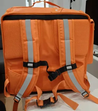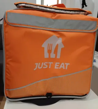 Mochila térmica para repartos, con el logo de Just Eat. - Color naranja brillante. - Diseño con detalles reflectantes. - Compartimento principal espacioso.