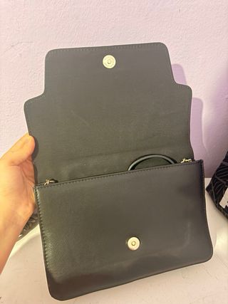 Bolso elegante de material sintético. - Diseño moderno y versátil. - Cierre de solapa.