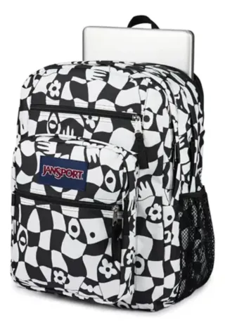 Mochila Jansport con un llamativo estampado Gravity Check en blanco y negro. Cuenta con un compartimento principal espacioso y varios bolsillos frontales para una mejor organización. - Compartimento para portátil. - Bolsillo frontal con organizador. - Bolsillos laterales de malla. Capacidad de 34 litros - 1 bolsillo portanotebook para capacidad de hasta 15" - 3 compartimientos principales - 1 Bolsillo interno - 3 bolsillos externos - 1 compartimiento de red para transportar botellas - Fabricada parcialmente con materiales reciclados - Con manija para colgar - Tiras regulables Medidas: Alto: 45cm Ancho: 31cm Profundidad: 18cm