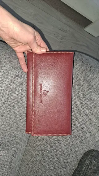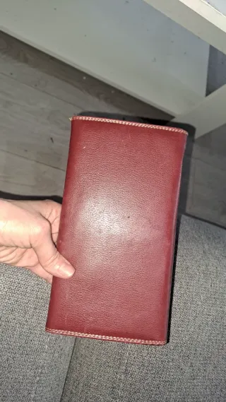 Cartera con varios departamentos , color marrón rojizo . Medidas : 21 cm x 12 cm
