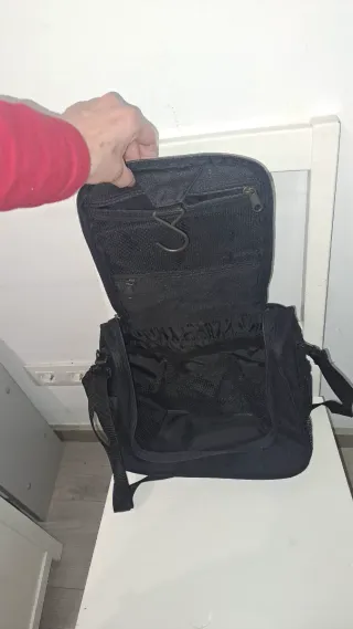 Neceser de viaje práctico y espacioso, perfecto para organizar tus artículos de aseo. - Diseño compacto y funcional. - Incluye un gancho para colgarlo fácilmente. - Múltiples compartimentos interiores para una mejor organización.