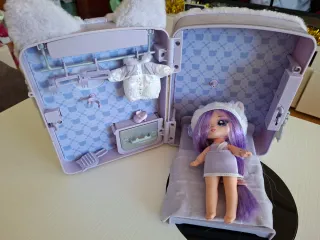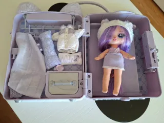 4Mochila de la muñeca Na Na Na Surprise, con un diseño inspirado en un gatito. - Incluye una muñeca. - Accesorios de moda y cama. - Estilo de moda. - Color lila.