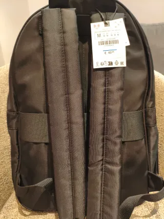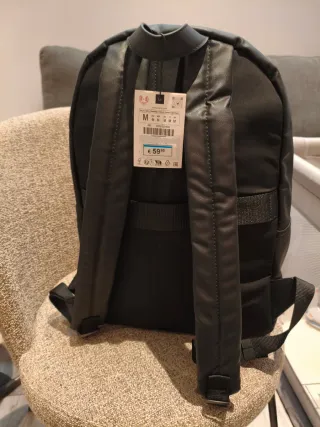 Mochila de la marca Zara en color negro. Diseño moderno y práctico. - Compartimento principal espacioso. - Bolsillo frontal con cremallera. - Correas ajustables.