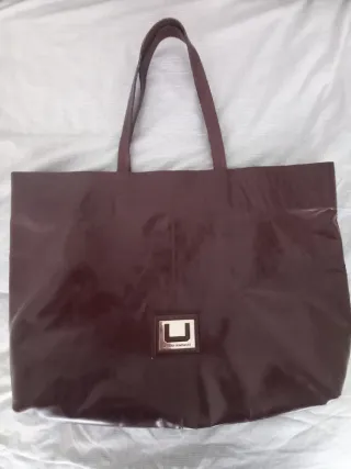 Bolso grande de color burdeos con acabado brillante. - Diseño acolchado con rombos. - Cremallera superior. - Asas cómodas para llevar al hombro.