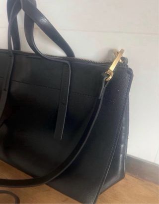 Bolso de mano y bandolera de Zara en color negro. Diseño elegante y versátil. Precioso bolso negro de Zara. Es elegante y versátil, ideal para el día a día. mide 30 cm de ancho 21 cm de alto. Las asas para agarrarle un fondo de 10 cm tiene para llevar de la mano o cobarde del hombro nunca utilizado - Material: Piel sintética. - Cierre principal con cremallera. - Asa corta para llevar en mano. - Correa larga ajustable para bandolera.
