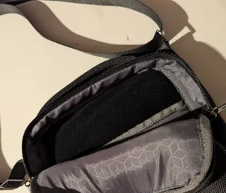 Mochila de una banda para paseo excursion de 3 bosillos laterales con enganches de refuerzo amplia capacidad, esta nueva tiene alguna mancha leve de ir en el maletero que se ira lavandola, no se ha usado