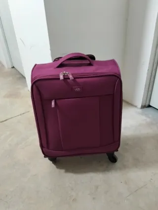 Maleta de viaje morada con cuatro ruedas para facilitar su transporte. - Medidas: alto 57cm, ancho 34cm, fondo 17cm. - Asa extensible, que cuando no se usa, queda guardada en su bolsillo con cremallera. - Bolsillo exterior delantero, cerrado con cremallera. - Bolsillo interior, en la tapa, con cremallera. - Tiene 2 cintas, para ajustar lo que metas en su cuerpo principal.