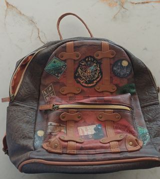 una cómoda mochila vintage de harry Potter de piel y con 3 bolsillos ( uno interior )