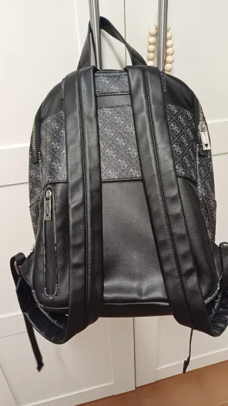 Mochila de la marca Guess con un diseño moderno y versátil. - Estampado de monograma. - Compartimento frontal con cremallera. - Logo metálico de la marca. El interior está perfecto en el exterior tiene algún roce al lado de las cremalleras como se muestra en las fotos. Muchos compartimentos para portatil , etc